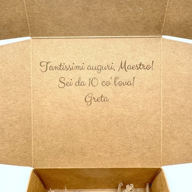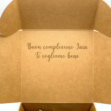 Il nostro servizio di personalizzazione della scatola con incisione laser è pensato per chi desidera donare qualcosa di speciale e indimenticabile. Non tralasciamo nessun dettaglio, quindi non perdere l'opportunità di rendere unico e originale il tuo prossimo regalo!